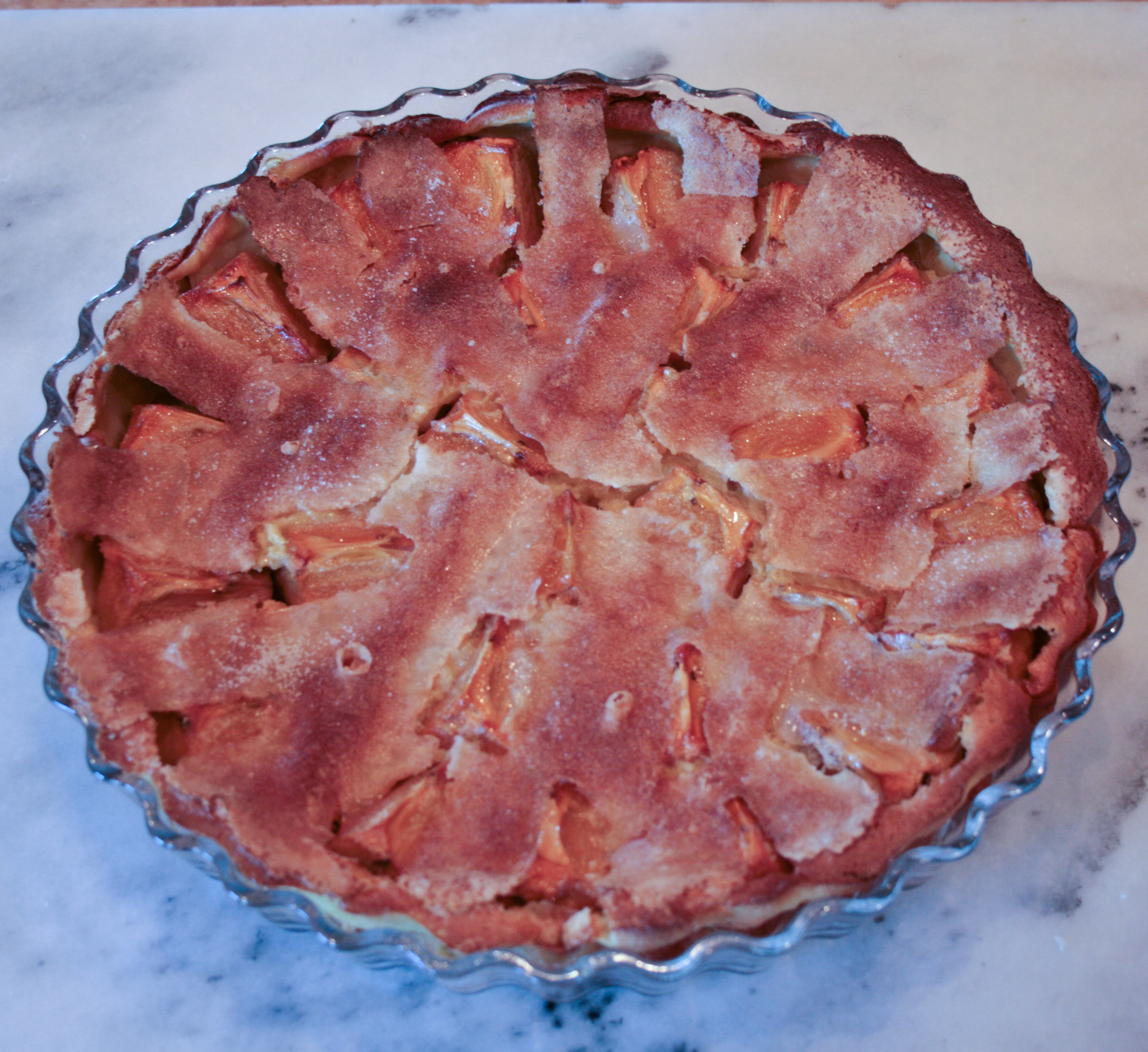 - Pour a 1/4 inch (1/2 cm.) layer of batter in the baking dish or pie plate and put it in the oven for two to three minutes until the batter sets in the bottom of the dish.
