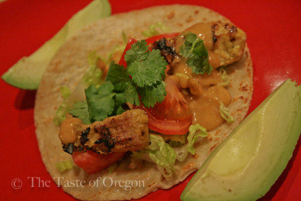 I envisioned a corn tortilla with some shredded romaine lettuce, chopped tomato, grilled chicken or pork satay, and a generous dollop of peanut-butter curry sauce. Top it off with a few springs of cilantro and voilà: Thai taco.